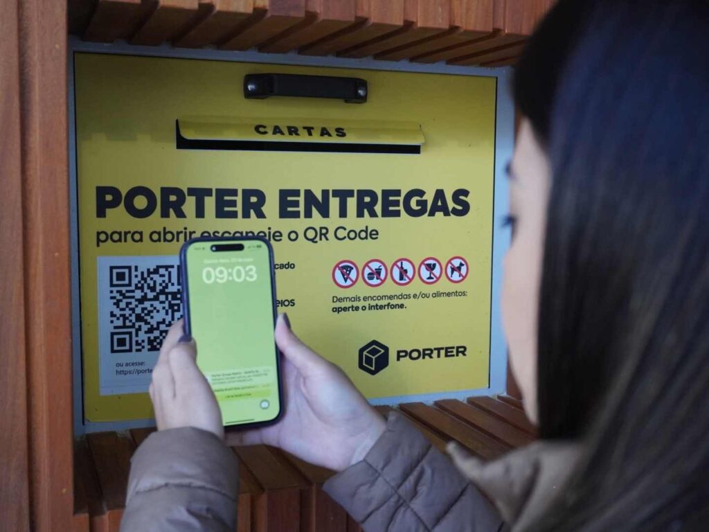 O Porter Entregas funciona como um sistema seguro e automatizado, instalado dentro da área comum do condomínio, o que permite que os próprios moradores retirem suas encomendas com autonomia.